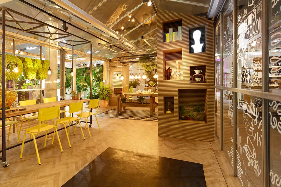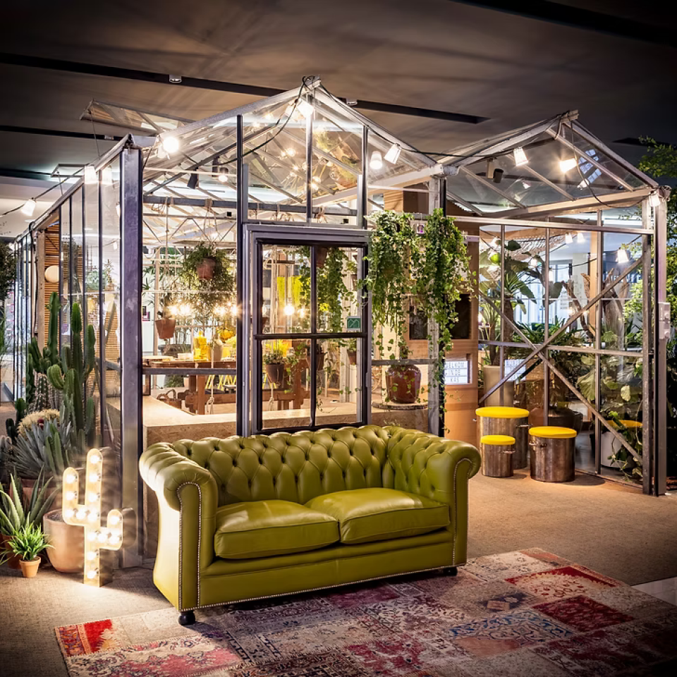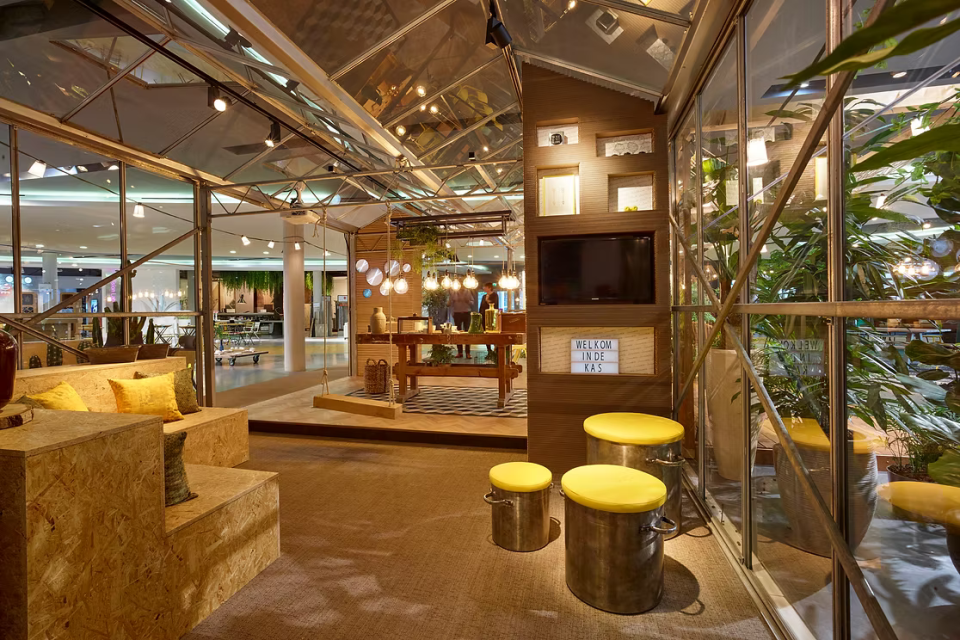 De kas werd ontworpen als belevingsruimte waarin elke partner een eigen vertaling kreeg binnen één samenhangend geheel. Niet via standaard displays, maar via speelse en zintuiglijke ingrepen.