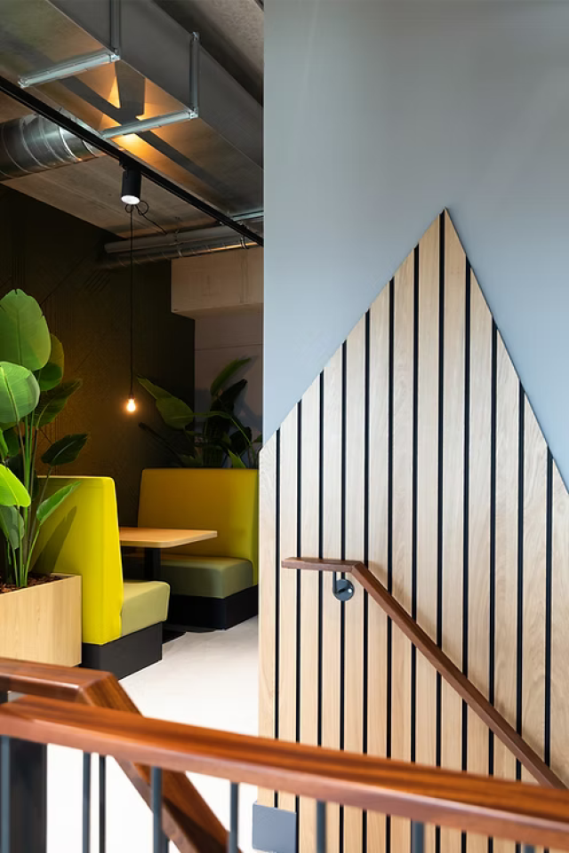 Studio Wieked verzorgde het interieurontwerp en de begeleiding van de uitvoering voor 864 m² aan werk en ontmoetingsruimtes, waaronder: