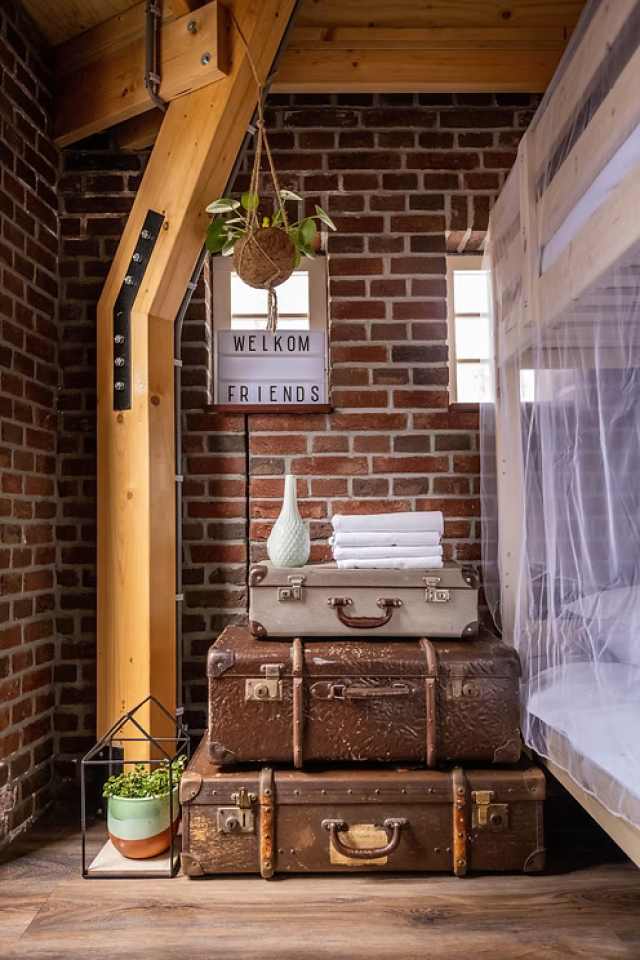 Een compacte, karaktervolle slaapruimte die uitnodigt tot verblijven en delen. Passend bij de doelgroep en sterk in beleving en beeld.