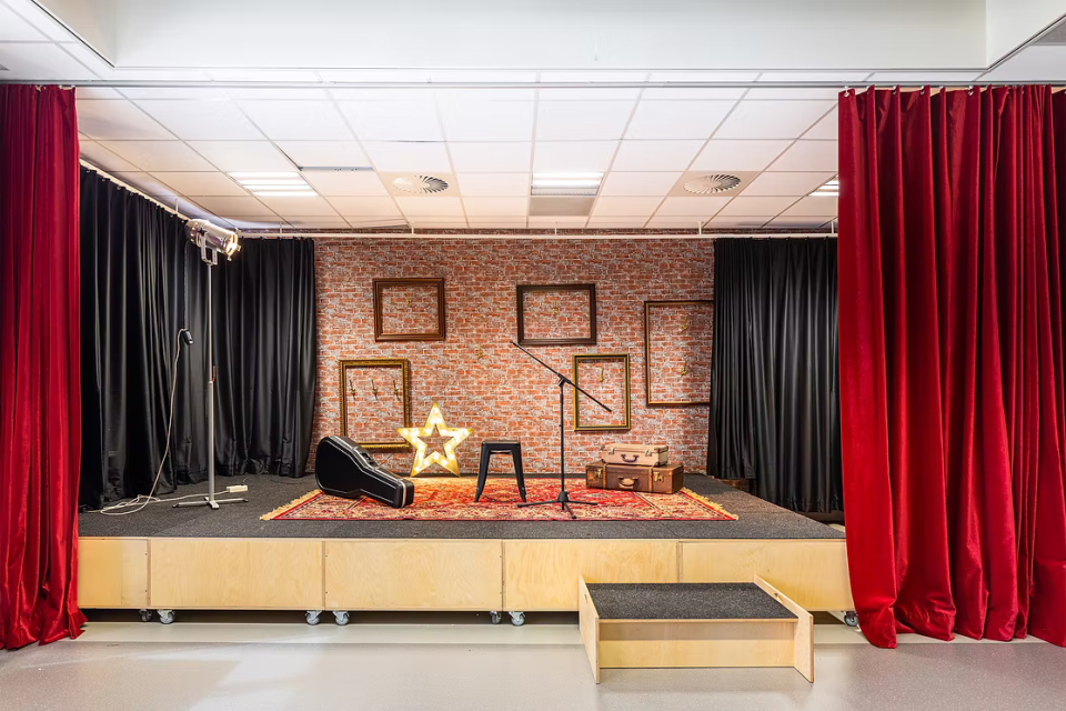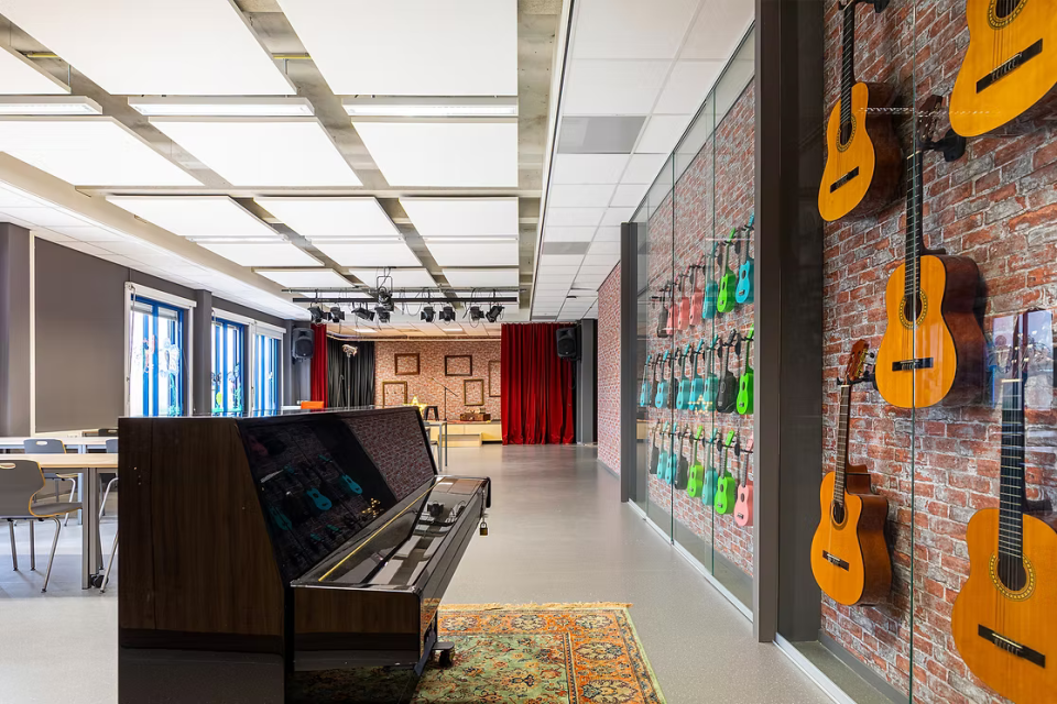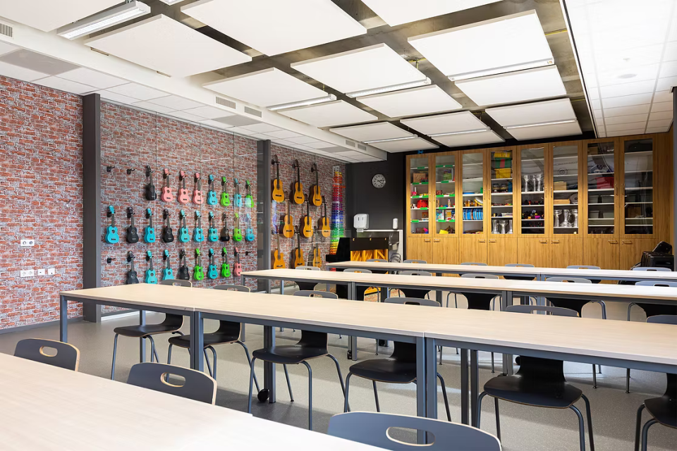 In het basisschoollokaal zorgen natuurlijke materialen en frisse kleuraccenten voor een veilige en uitnodigende sfeer. Het theaterlokaal is zo ingericht dat instrumenten onderdeel zijn van de ruimte en aanzetten tot gebruik. In het doktersassistentenlokaal is met maatwerk en realistische details een praktijkgerichte setting gemaakt.